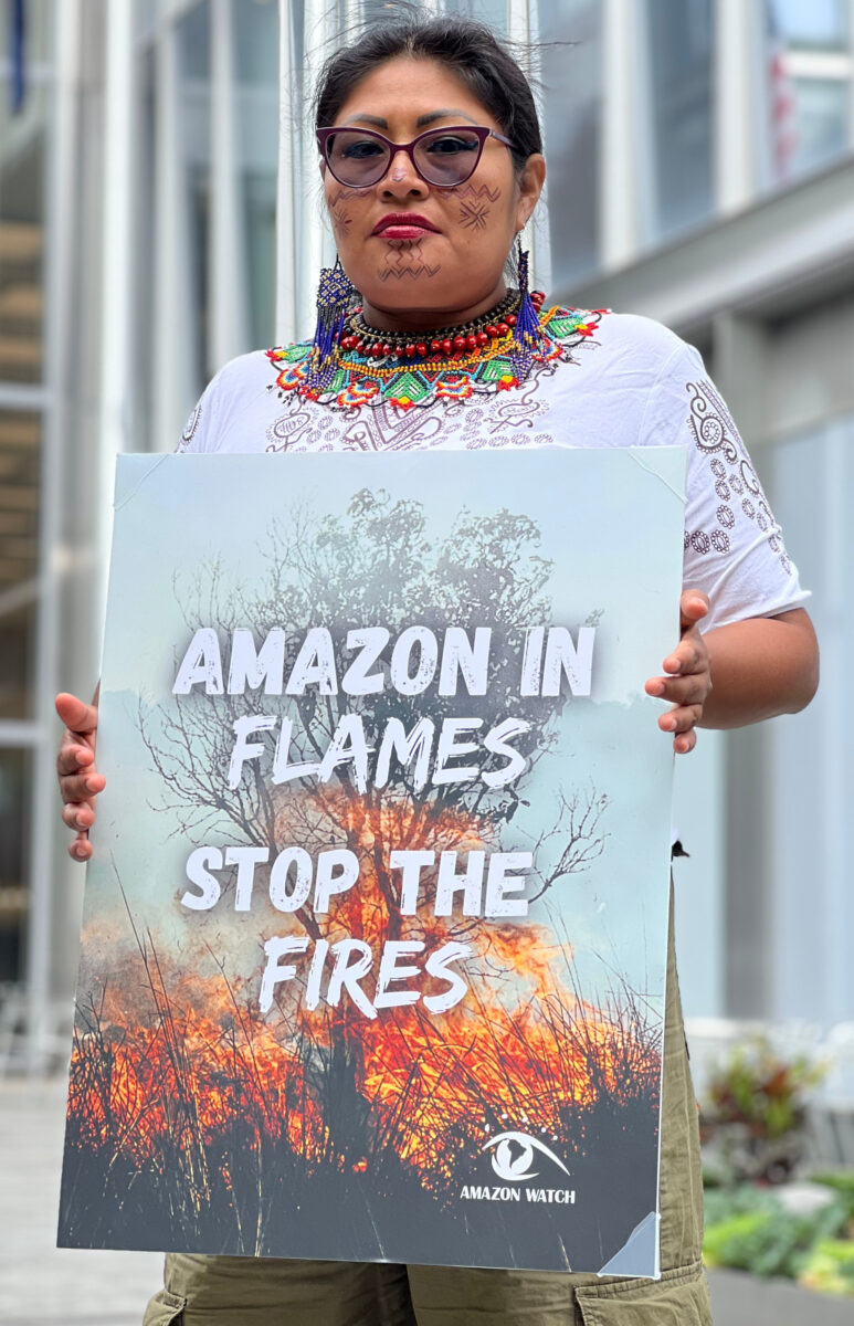 As in 2019, Amazon Watch is supporting Indigenous communities’ immediate needs and investing in long-term solutions. Our Amazon Fire Response Fund provides essential relief, such as protective equipment, support for Indigenous firefighting teams, and emergency food supplies.