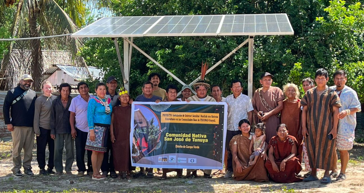 In partnership with FECONAU – one of the oldest and most respected Indigenous federations in the Peruvian Amazon, representing over 30 communities of Shipibo-Konibo, Asháninka, Isconahua, and Aguajún peoples – Amazon Watch and Empowered by Light implemented a transformative solar energy project across the Ucayali region. This large-scale initiative brought clean, renewable electricity and satellite internet to 15 remote communities, directly benefiting more than 6,000 people who live deep within the Amazon rainforest.