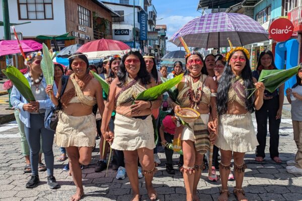 Jade Begay, Climate Justice Campaign Director of NDN Collective and Amazon Watch Board Member shares more: “This year, Indigenous Peoples mobilized our efforts to challenge Article 6 in particular because of its severe implications to our land rights. This article promotes carbon market mechanisms that would open up opportunities for land grabs by corporations and governments. We firmly took the position that we would not accept Article 6 unless it includes specific language respecting Indigenous knowledge, proper consultation with Indigenous Peoples throughout the entirety of any decision making processes, and an independent grievance mechanism that holds bad actors accountable.”