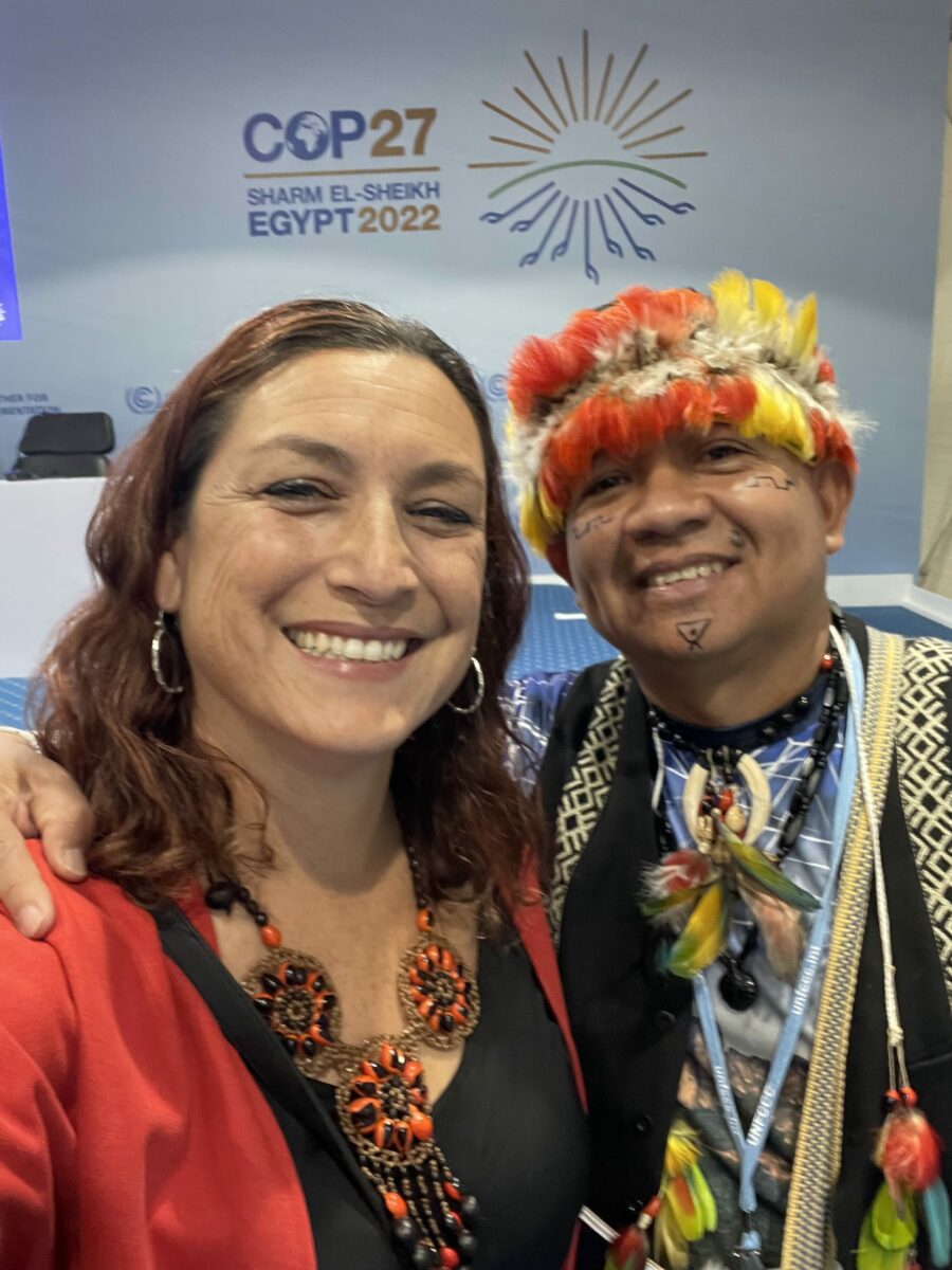 While extremely outnumbered, women and youth had a strong presence at COP27. One of the most powerful moments was to see recently-elected Indigenous congresswomen from Brazil, Celia Xakriaba and Sonia Guajajara, and colleagues from ANMIGA walk and sing through the halls of COP27 to let everyone know that they were there and Brazilian President-elect Lula had arrived.