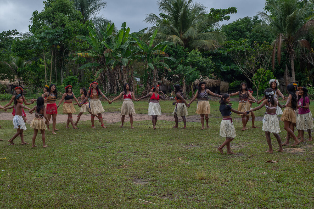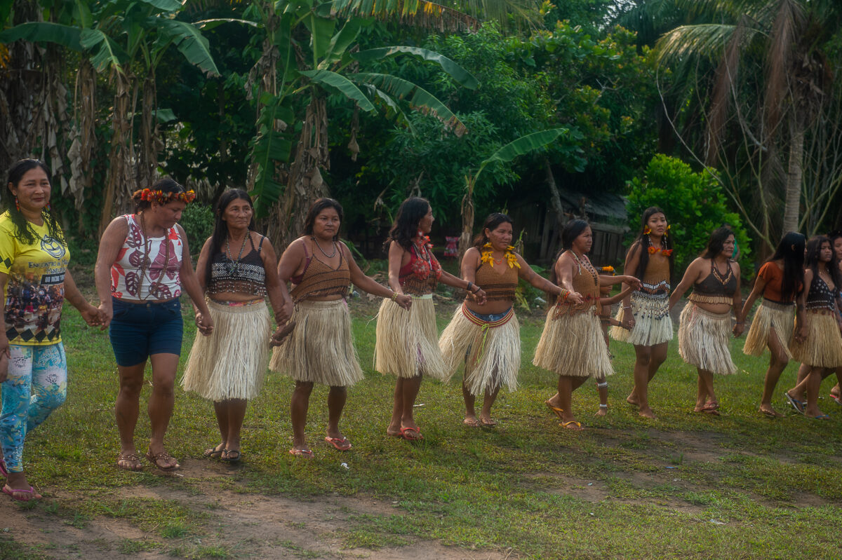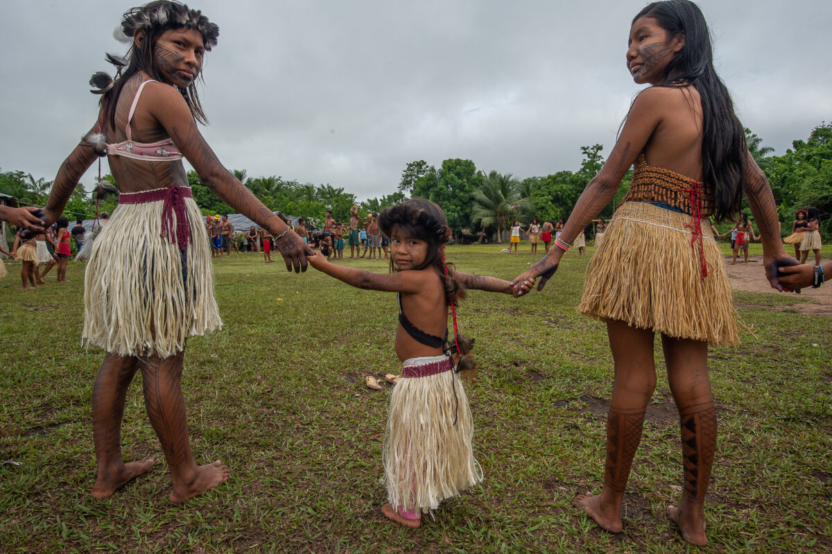 To commemorate this momentous victory, the village of Sawré Muybu hosted a celebration, gathering their relatives from across the vast stretches of their ancestral homelands known as Mundurukânia. Rejoicing in three days of communion, the intergenerational celebration centered on the community’s joy and gratitude. The event was a rare and much-needed moment to appreciate a hard-fought collective achievement. Amazon Watch was honored to document this historic moment with Anderson Barbosa’s striking photos.
