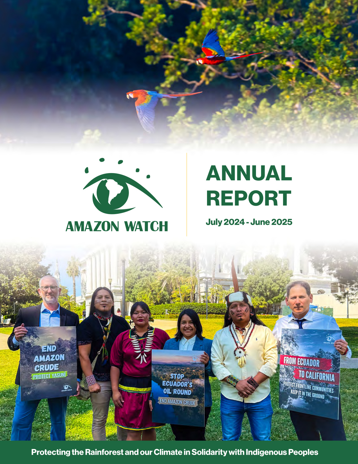 In a world increasingly in denial about the consequences of climate change and fossil fuel extraction, Amazon Watch is doubling down on our grassroots partnerships. This is a hallmark of my leadership: just as our partners on the ground do not have the luxury of backing down, neither can we. We are deeply grateful for your partnership on this journey. I invite you to read this Annual Report as a testament to what we have achieved together – and as a call to continue standing with those defending the Amazon, our climate, and our collective future.